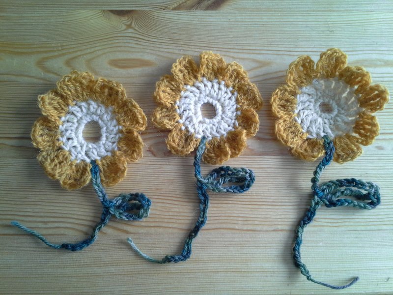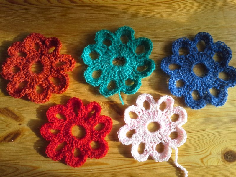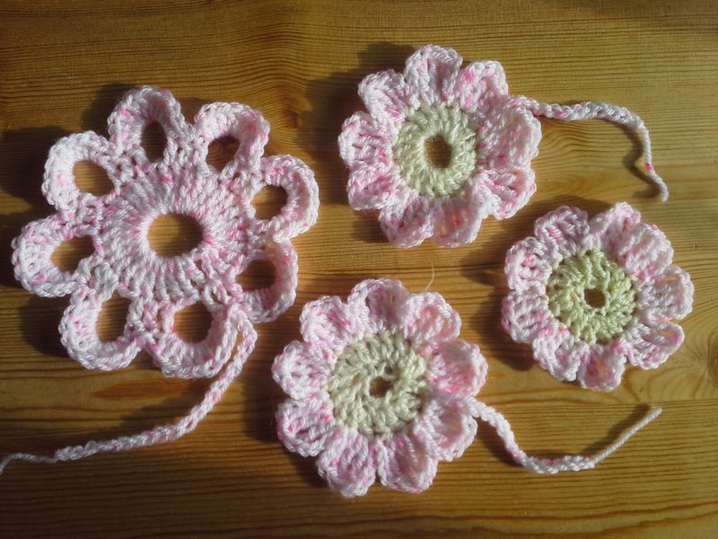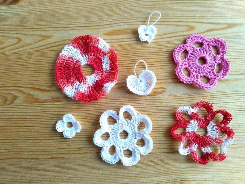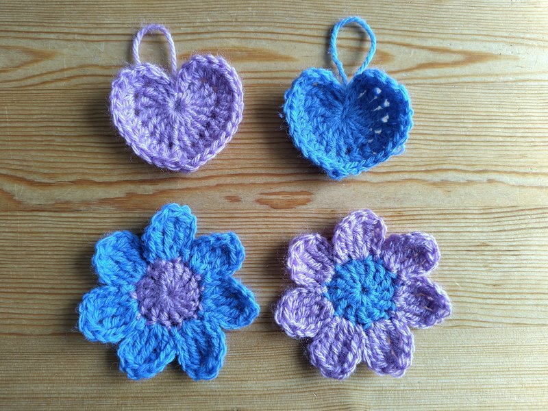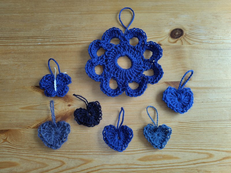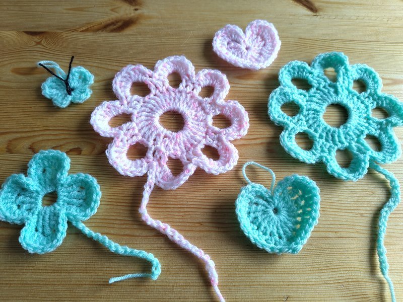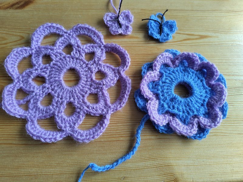 En hiver et printemps 2025, je me suis remise au crochet. J'ai trouvé des nouveaux fils à la boutique seconde main et j'ai commencé par refaire les mêmes formes que je connaissais: fleurs, coeurs et papillons.