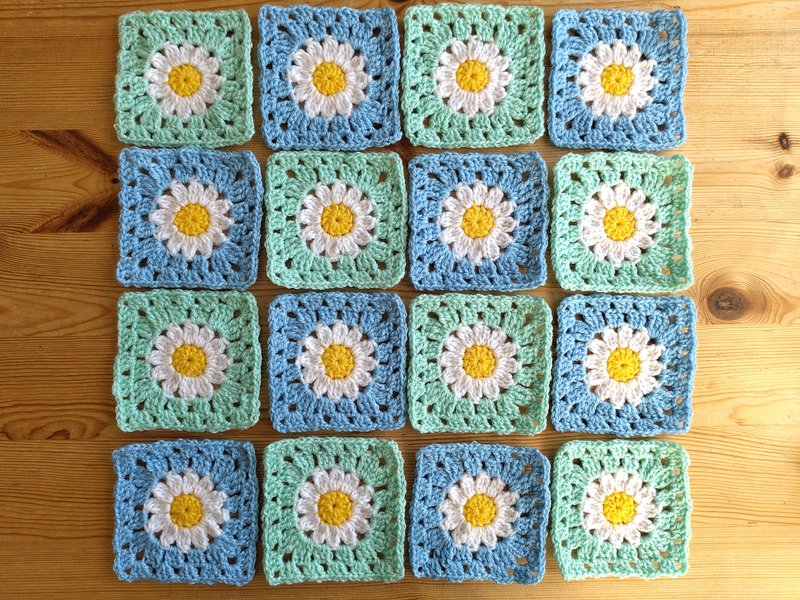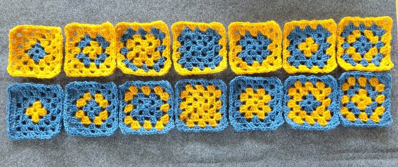 Puis j'ai essayé un nouveau modèle de carrés de grand-mère.