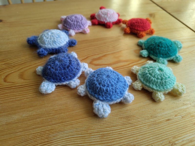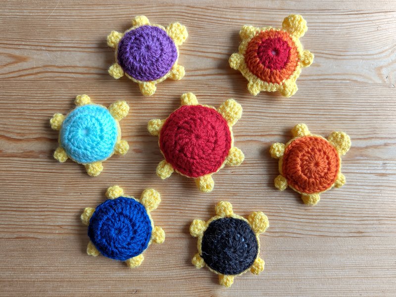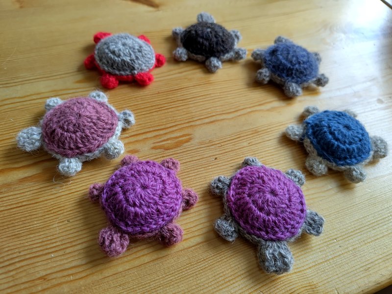 À l'automne, je me suis d'abord remise aux tortues, avec mon fil jaune nouvellement procuré.
