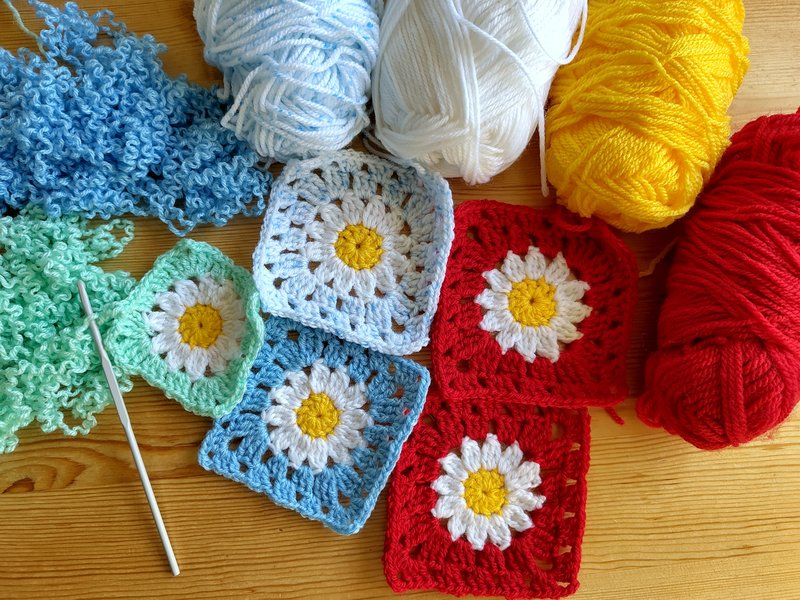 Au printemps 2024, je me suis mise au crochet avec des restes de laine et fils que j'ai eu de ma belle-mère, qui ne fait plus ni tricot, ni crochet depuis longtemps. Ensuite, j'ai acheté du fil à la boutique seconde main de la croix rouge.